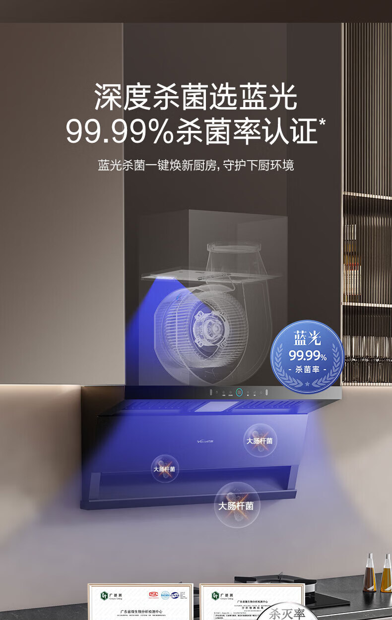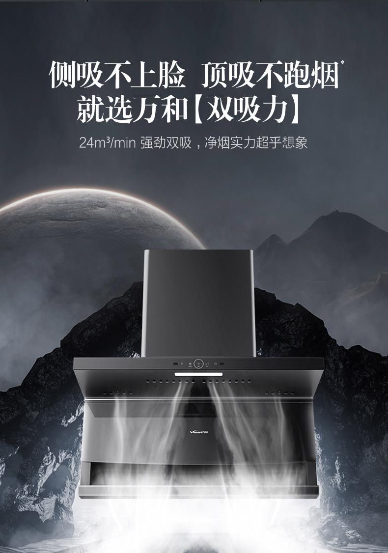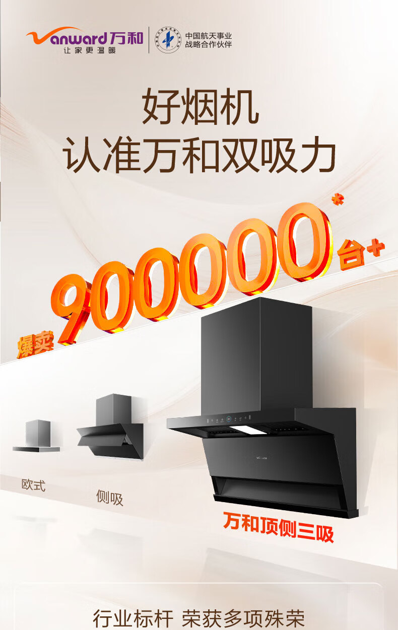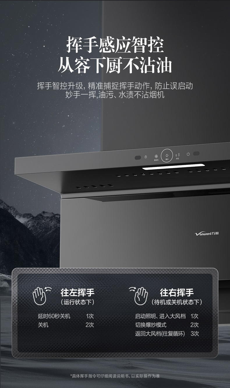 万和(Vanward)顶侧双吸油烟机 智能挥手智控 自动清洗 7字型 抽油烟机家用 厨房大吸力吸烟机 排烟机 免费安装 【25m³顶侧三吸】WL860
