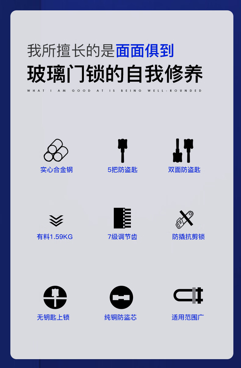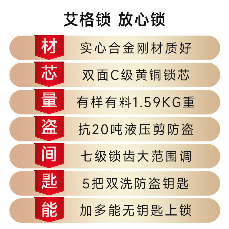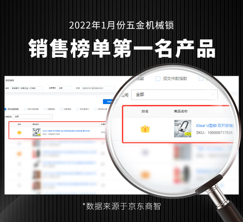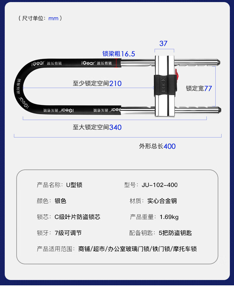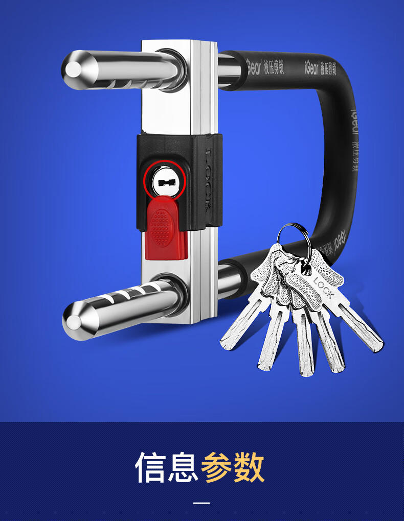 iGearU型锁双开玻璃门锁C级锁芯插锁防撬防盗锁具摩托车电动电瓶车挂锁